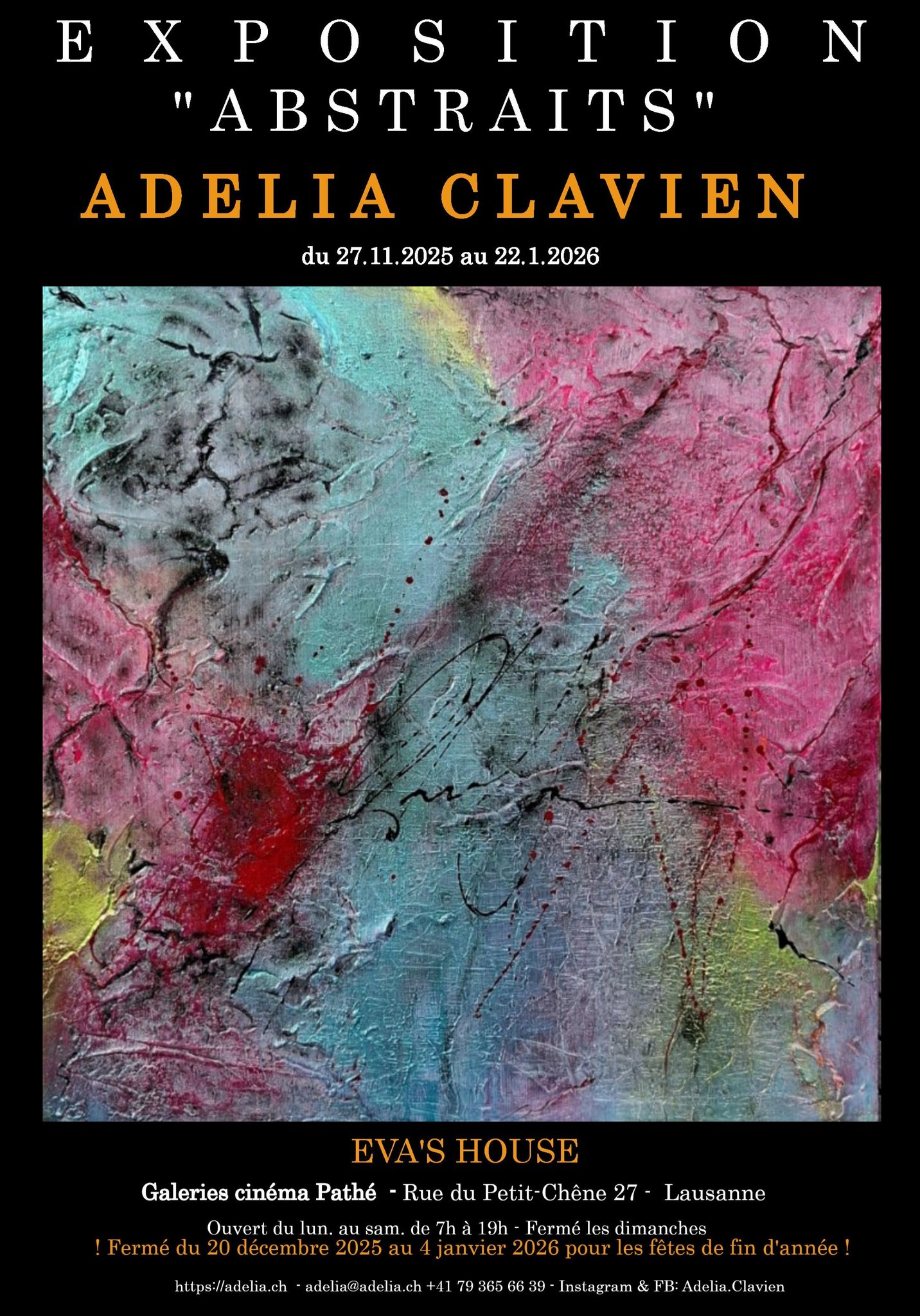 2026 - SIERRE: Exposition "ABSTRAITS" de Adelia Clavien à Galerie Art for YOU à Sierre - Suisse du 22 novembre au 4 janvier 2027